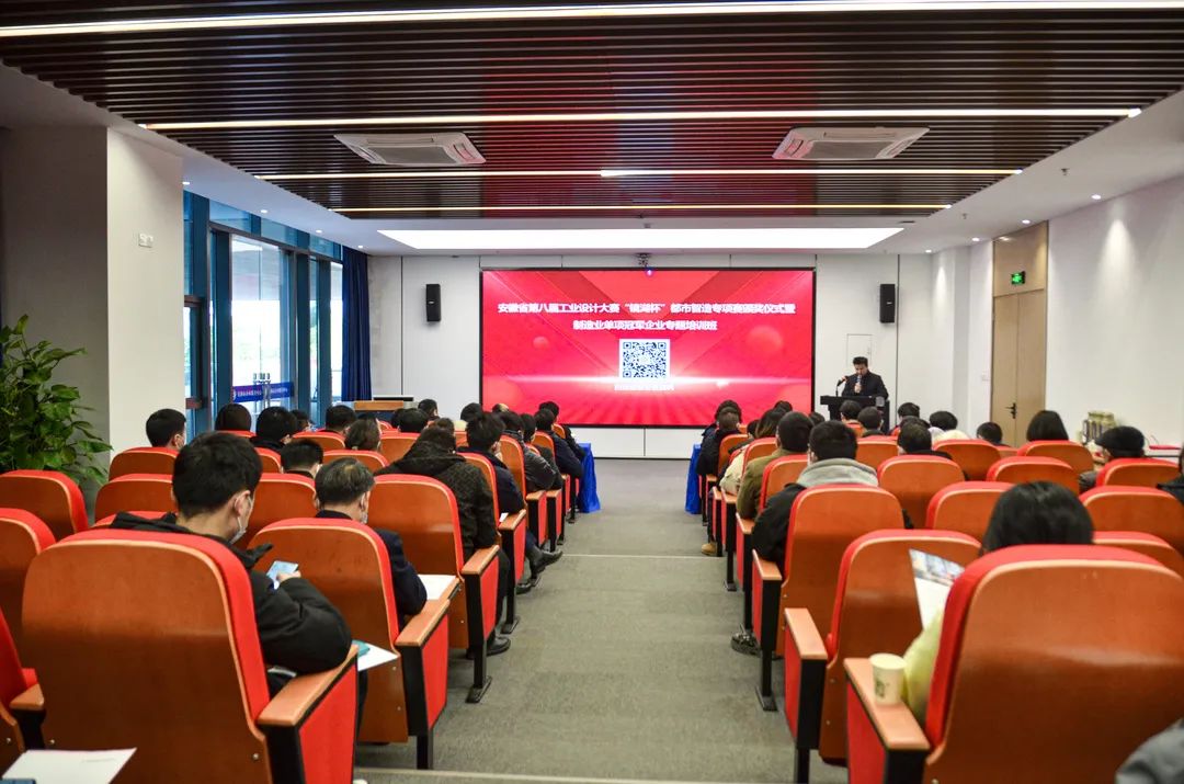 12月17日下午,安徽省第八届工业设计大赛“镜湖杯”都市智造专项赛颁奖仪式暨制造业单项冠军企业专题培训班活动在市企业服务中心举办。芜湖市经济和信息化局副局长汤新亮、芜湖市经济和信息局产业政策与法规科科长花晓东、镜湖区经济和信息化局局长方仲明、安徽工程大学艺术学院副院长王小元、安徽师范大学美术学院副院长陈琳、芜湖市工业设计产业联盟秘书长卞国琛等出席会议。部分工业企业负责人、高校教师参加颁奖仪式。
