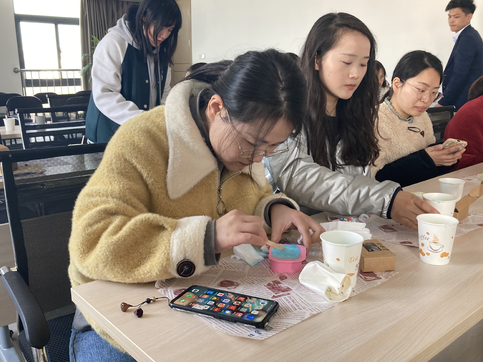 活动现场,老师为大家讲解并示范了手工皂的的制作步骤和制作过程中的注意事项,之后助教老师指导大家分组进行手工皂DIY制作。通过融化皂基、添加色料、香料和草药、倒入模具并冷却成型,最终一个个充满个性的手工皂诞生了,现场气氛一度高涨。